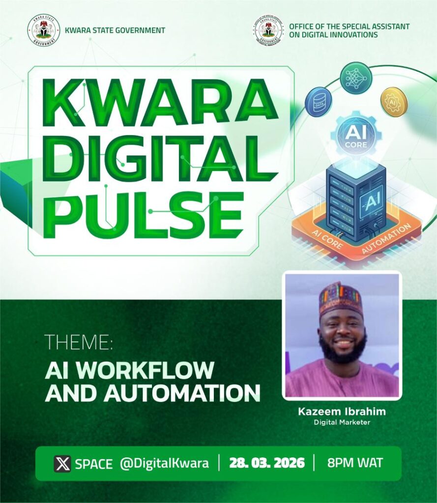 Scheduled for Saturday, March 28, 2026, at 8:00 PM (WAT), the session will be hosted on X (formerly Twitter) via @DigitalKwara. Participants will gain strategic insights into how integrated AI systems are reshaping corporate efficiency and entrepreneurial growth. This initiative directly aligns with the vision of His Excellency, Mallam AbdulRahman AbdulRazaq, CON, to leverage technology as a cornerstone for state-wide innovation and economic transformation.